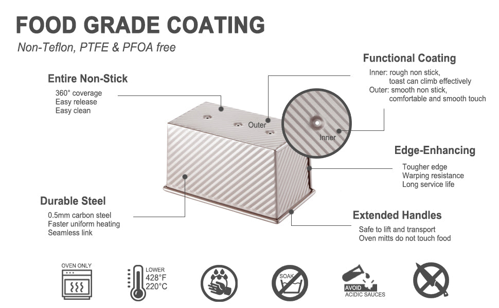 Coating: Food Grade Silicone (Non-Teflon, LEAD/PTFE/PFOA/APEO-Free)