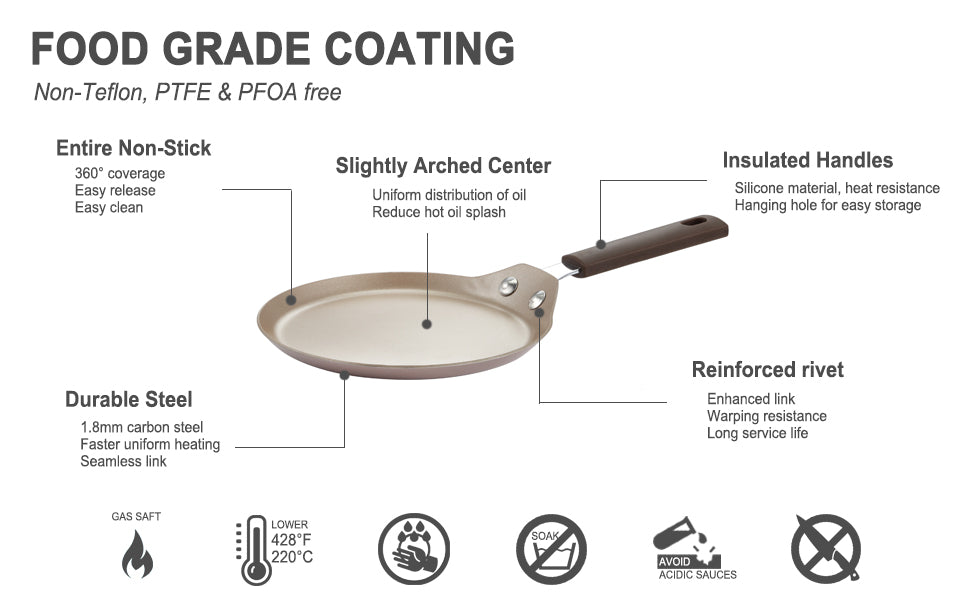 Coating: Food Grade Silicone (Non-Teflon, LEAD/PTFE/PFOA/APEO-Free)