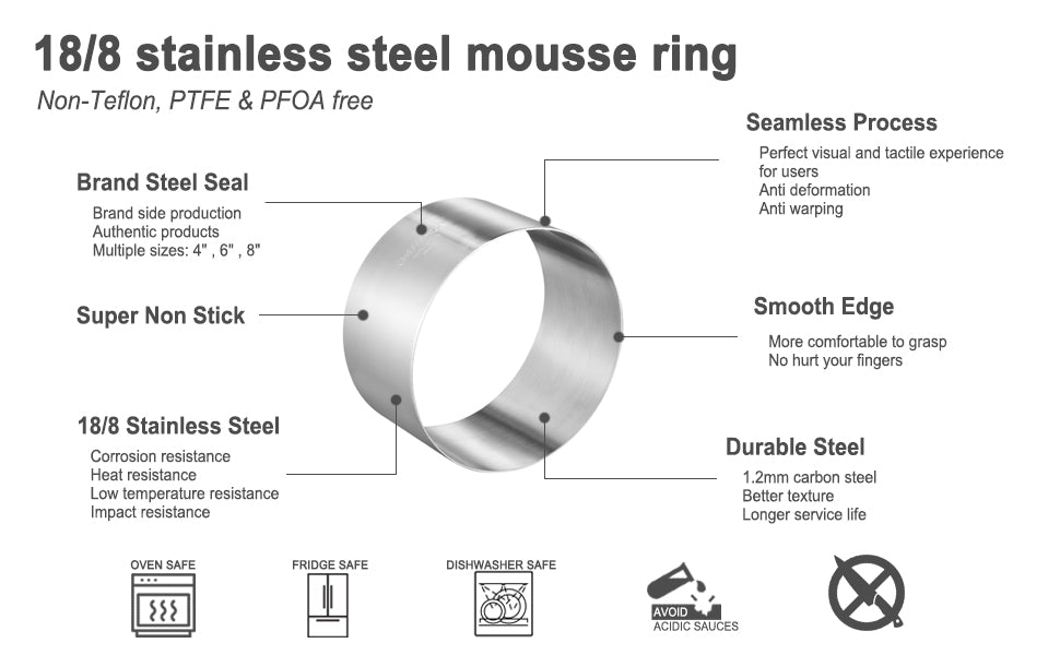 Chefmade學廚WK9312圓形6吋不銹鋼慕斯圈6" Round Mousse