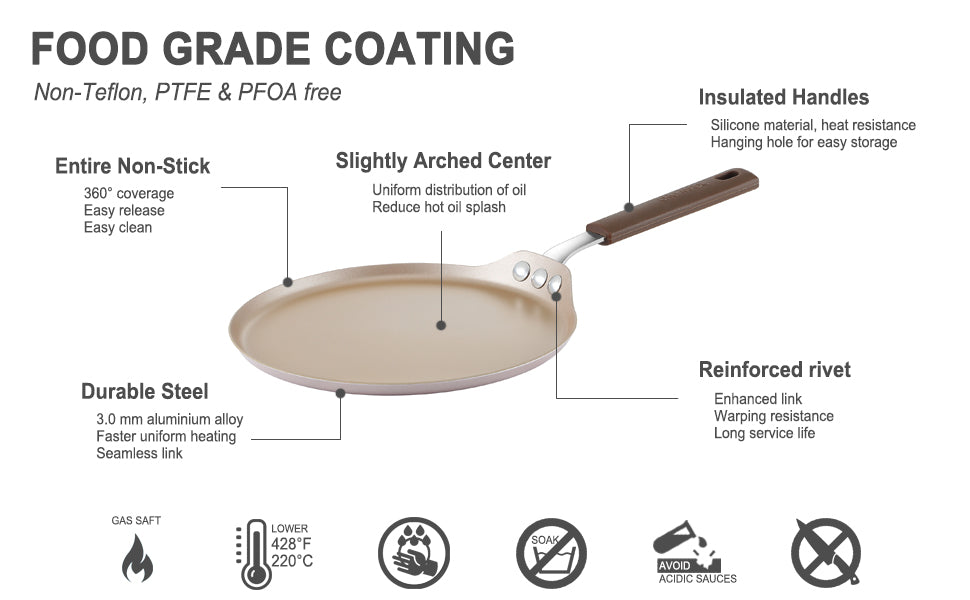 Coating: Food Grade Silicone (Non-Teflon, LEAD/PTFE/PFOA/APEO-Free)