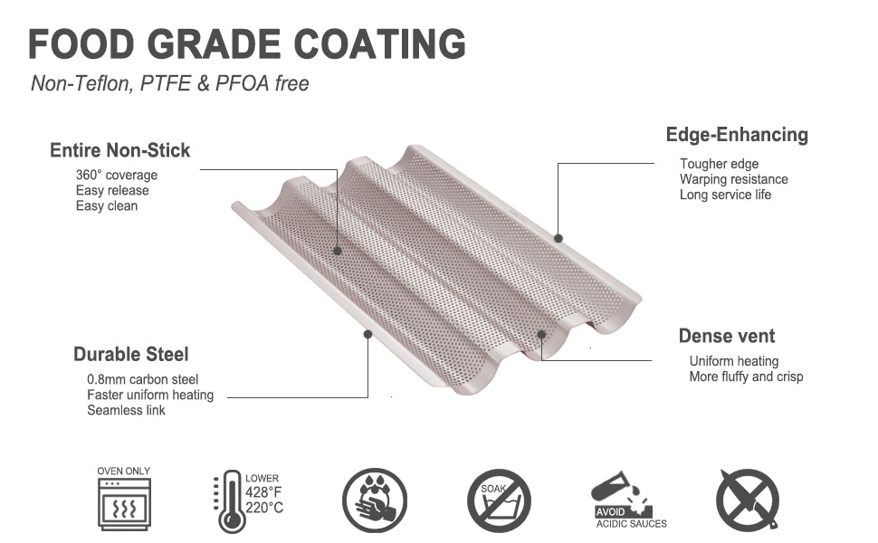 Coating: Food Grade Silicone (Non-Teflon, LEAD/PTFE/PFOA/APEO-Free)