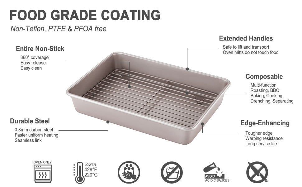 Chefmade學廚WK9266深款長方形13吋烤盤+網架9" x 13" Roasting Pan with Rack