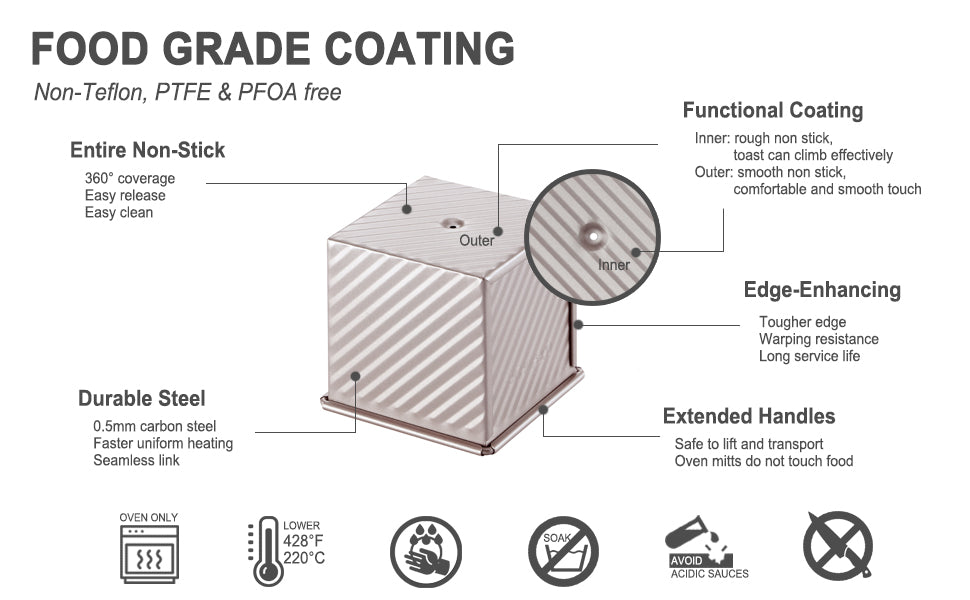 Coating: Food Grade Silicone (Non-Teflon, LEAD/PTFE/PFOA/APEO-Free)