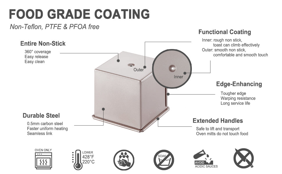Coating: Food Grade Silicone (Non-Teflon, LEAD/PTFE/PFOA/APEO-Free)