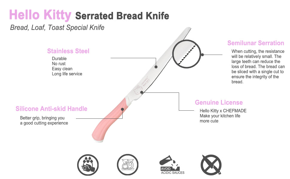 Chefmade學廚KT7021正版Hello kitty不銹鋼麵包刀8" Hello Kitty Serrated Knife for Bread