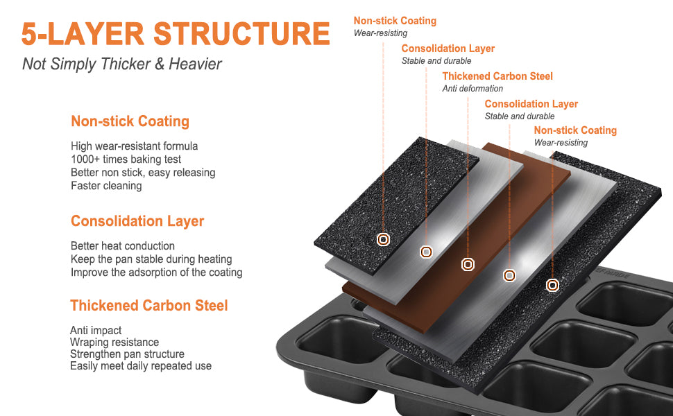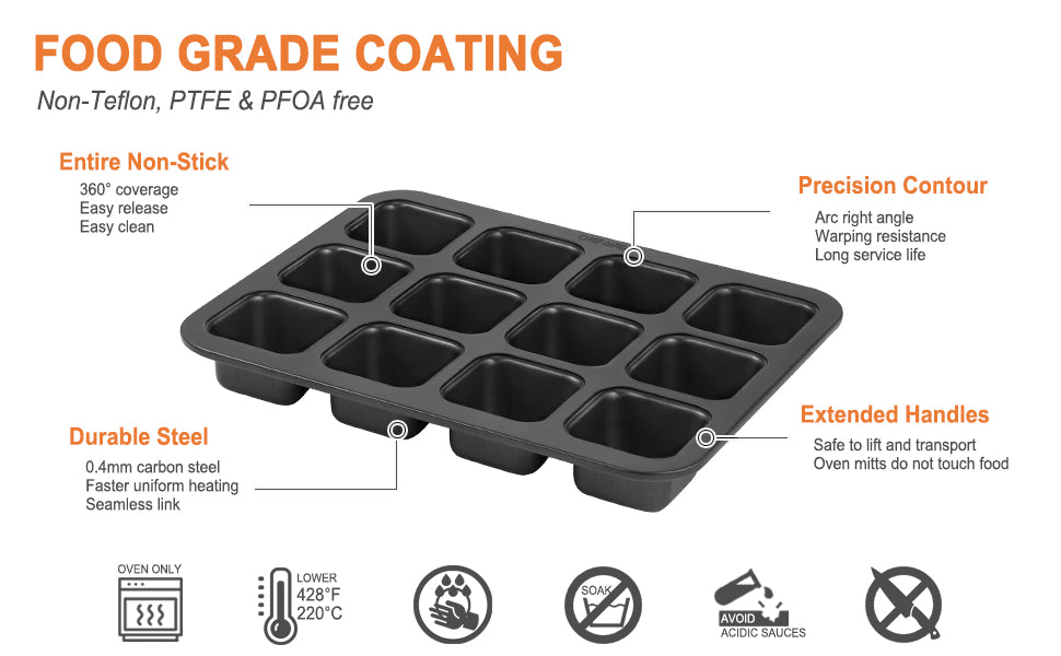 Chefmade學廚WK9873黑色12連方形蛋糕模Brownie Cake Pan Square 12 Well (balck)