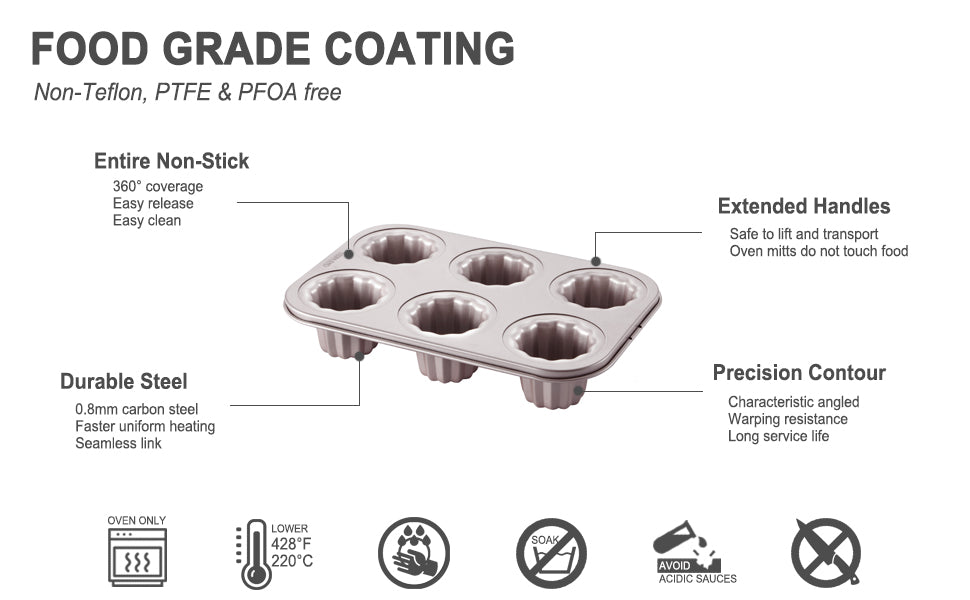 Chefmade學廚WK9864不沾6連可麗露模Cannele Mold 6 Well