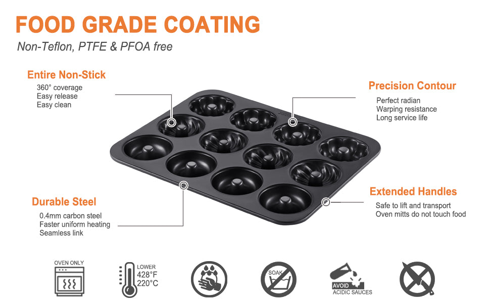 Coating: Food Grade Silicone (Non-Teflon, LEAD/PTFE/PFOA/APEO-Free)