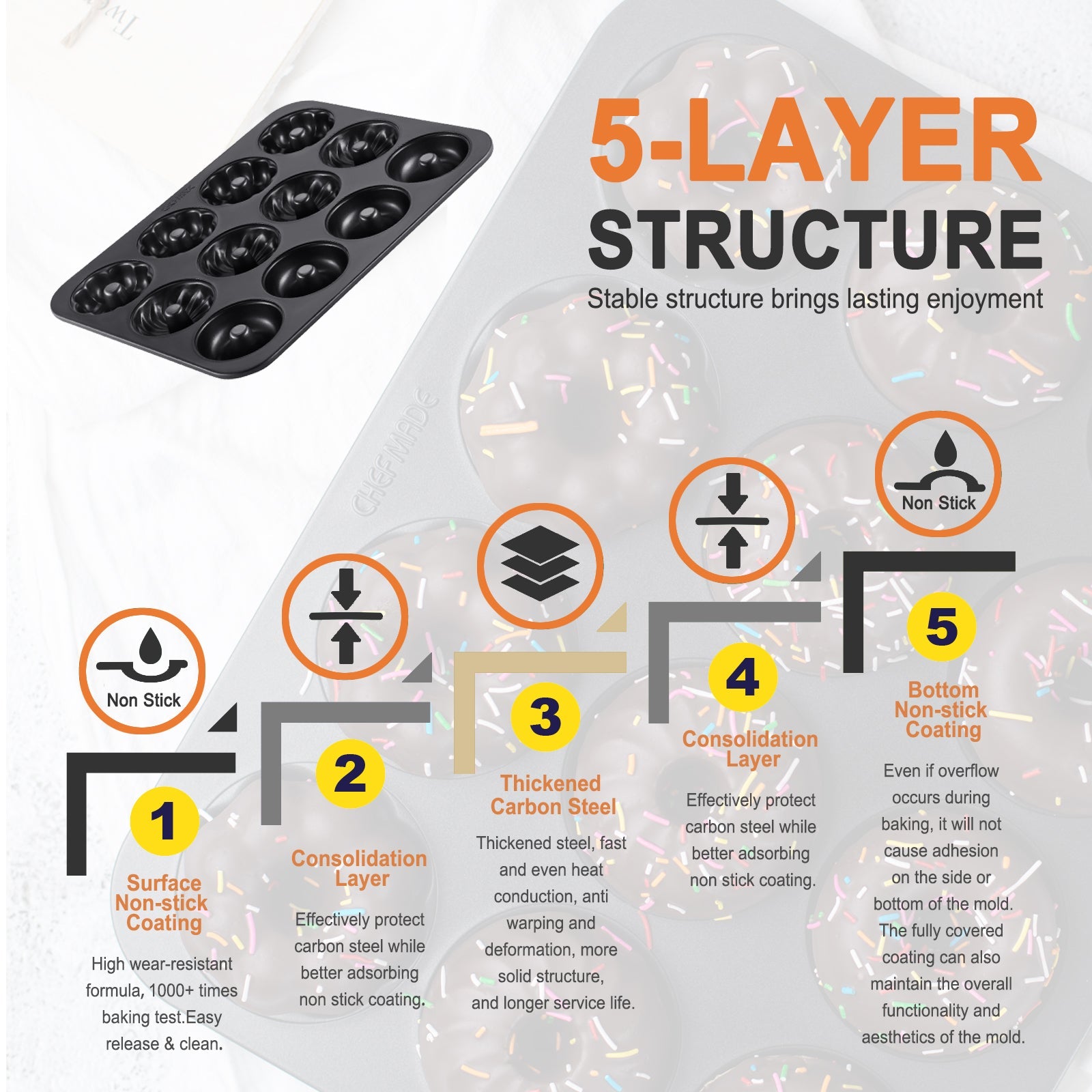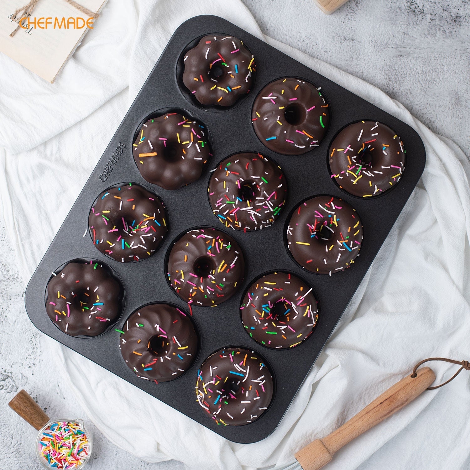 Chefmade學廚WK9869黑色12連三款花樣甜甜圈模Donut Cake Pan Fancy-Shaped 12 Well (Black)