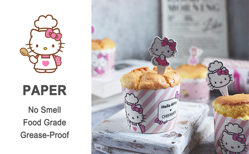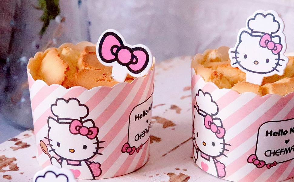 Chefmade學廚KT7068正版HelloKitty耐高溫1號蛋糕紙杯25入含插卡Hello Kitty Chef Muffin Liners 25Pcs