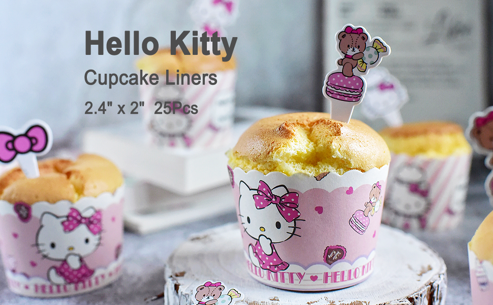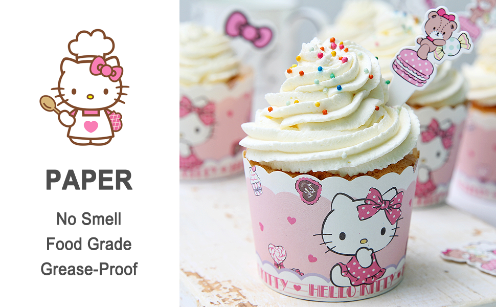 Chefmade學廚KT7069正版HelloKitty耐高溫2號蛋糕紙杯25入含插卡Hello Kitty Girl Muffin Liners 25Pcs