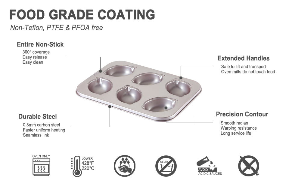 Coating: Food Grade Silicone (Non-Teflon, LEAD/PTFE/PFOA/APEO-Free)