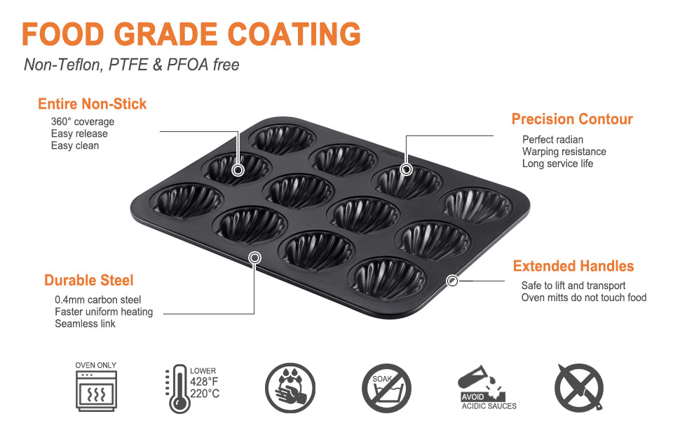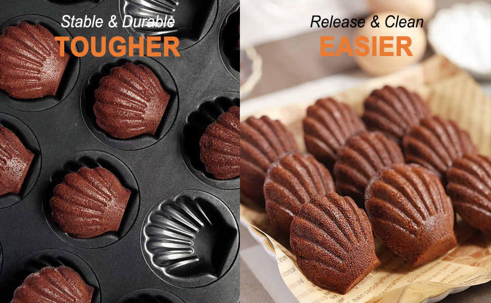 Chefmade學廚WK9874黑色12連碳鋼貝殼瑪德琳蛋糕模 Madeline Cake Pan Scallop-Shaped 12 Well (Black)