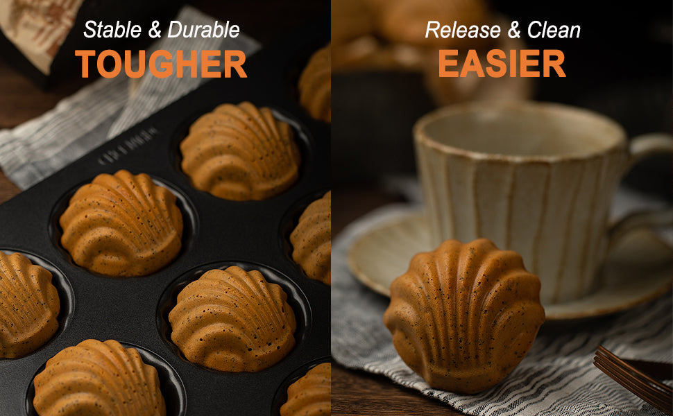 Chefmade學廚WK9872黑色12連日式貝殼瑪德琳蛋糕模Madeline Cake Pan Spherical Shell-Shaped 12 Well