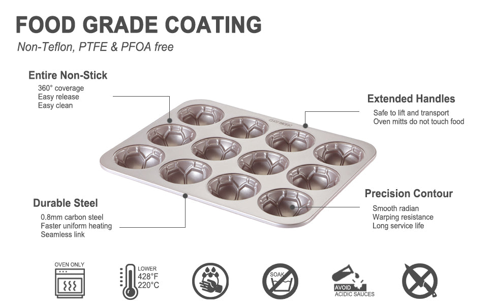 Coating: Food Grade Silicone (Non-Teflon, LEAD/PTFE/PFOA/APEO-Free)